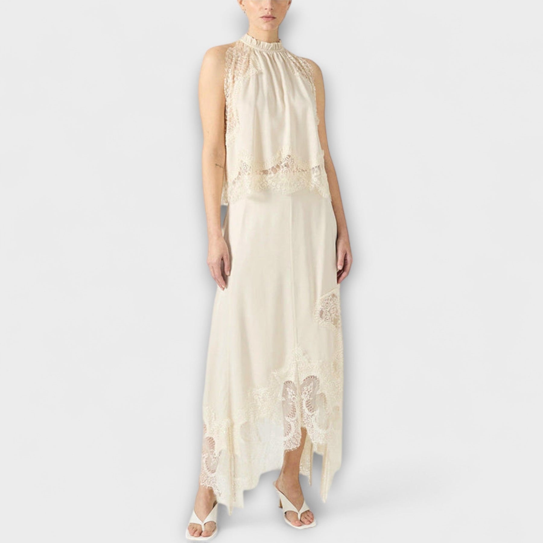 Rewritten: "Kaia - Satin Top med Blonder og Plisseret Udsnit i Sæt