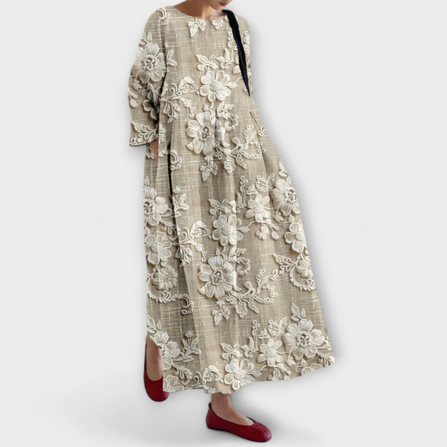 Opdag Nora - Det Elegante Blomstertrykte Kjole, der forvandler hvert skridt til et øjeblik af charme. Denne blomsterprintede maxikjole kombinerer tidløst design med en flatterende, afslappet silhuet til elegante optrædener hele dagen.